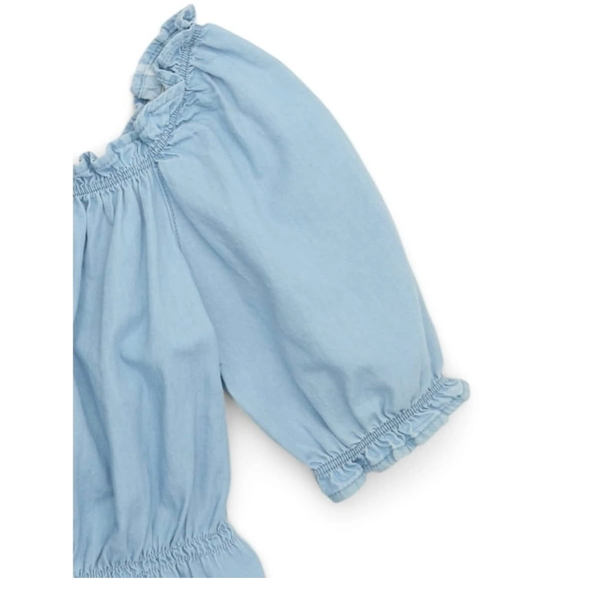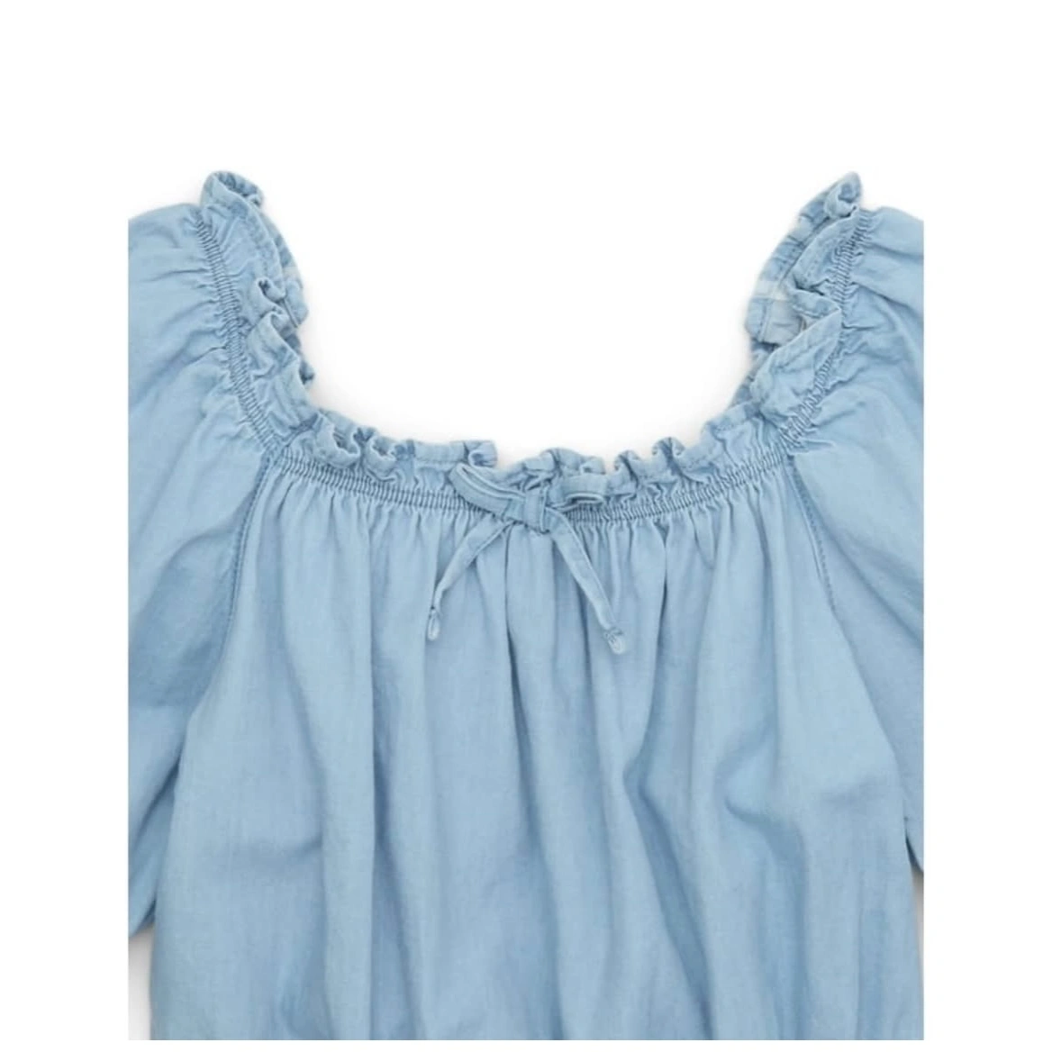 Sleeves: Three-quarter puff sleeves with elastic cuffs