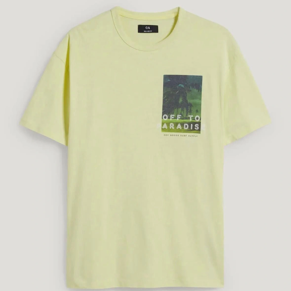 Add a cheerful pop of color to your everyday wardrobe with this C&A yellow T-shirt. Crafted from soft, breathable cotton, it ensures all-day comfort while keeping your style effortlessly casual. The classic round neck and short sleeves make it versatile to pair with jeans, shorts, or skirts. Perfect for layering or wearing on its own, this tee is a wardrobe essential for anyone who loves minimal yet vibrant fashion.